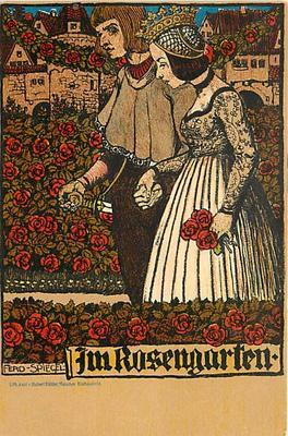 SPIEGEL-ROSE GARDEN-ROMANTIC COUPLE HOLDING HANDS-SWORD-C...