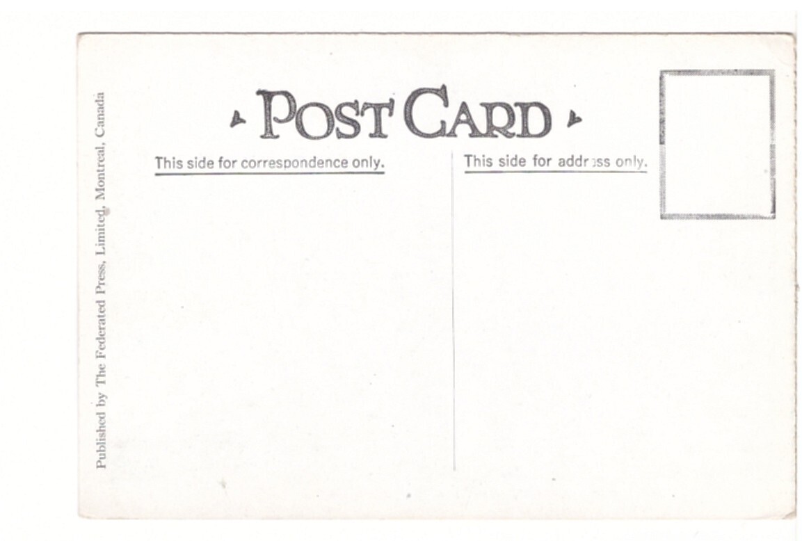 For sale is this Standard (5.5 in x 3.5 in) size postcard. Pictures shown below are of the actual postcard that is for sale. Any defects not readily visible in these scans will be listed after this sentence.Very slight creasing on right edge.Publisher: Federated Press LimitedSHIPPING CHARGES:Canada and United States: $1.50 for one postcard and 10 cents for each additional postcard*International: $3.00 for one postcard and 25 cents for each additional postcard*NOTE: Multiple payments result in multiple shipments.Please avoid making multiple payments by waiting for one complete invoice to be sent to you. Thank you.*Excludes adding additional folder postcards. Combined shipping on multiple folder postcards is welcome and shall be dealt with on an individual basis.009C054-37