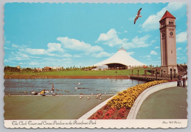 Spokane WA~Clock Tower & Circus Pavilion In Riverfront Park~Continental Postcard