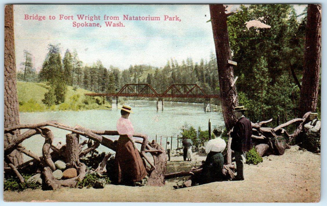 SPOKANE, Washington WA Bridge to FORT WRIGHT from Natatorium Park Postcard