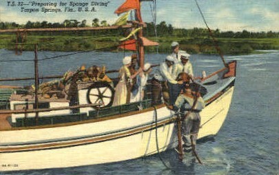 Sponge Diving - Tarpon Springs, Florida FL Postcard ,