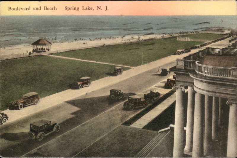 Spring Lake New Jersey Boulevard and Beach c1930-50s Vintage Postcard