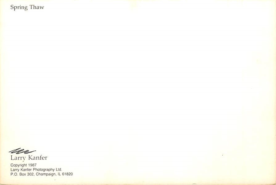 Spring Thaw, By Larry Kanfer Postcard - View Images Grade: 1 Size: C - Continental Size Postcard - approximately 4 inch X 6 inch (15 CM X 10.5 CM) Grading Scale: Grade 1 = Perfect corners Grade 2 = Very Minimal ... Read More