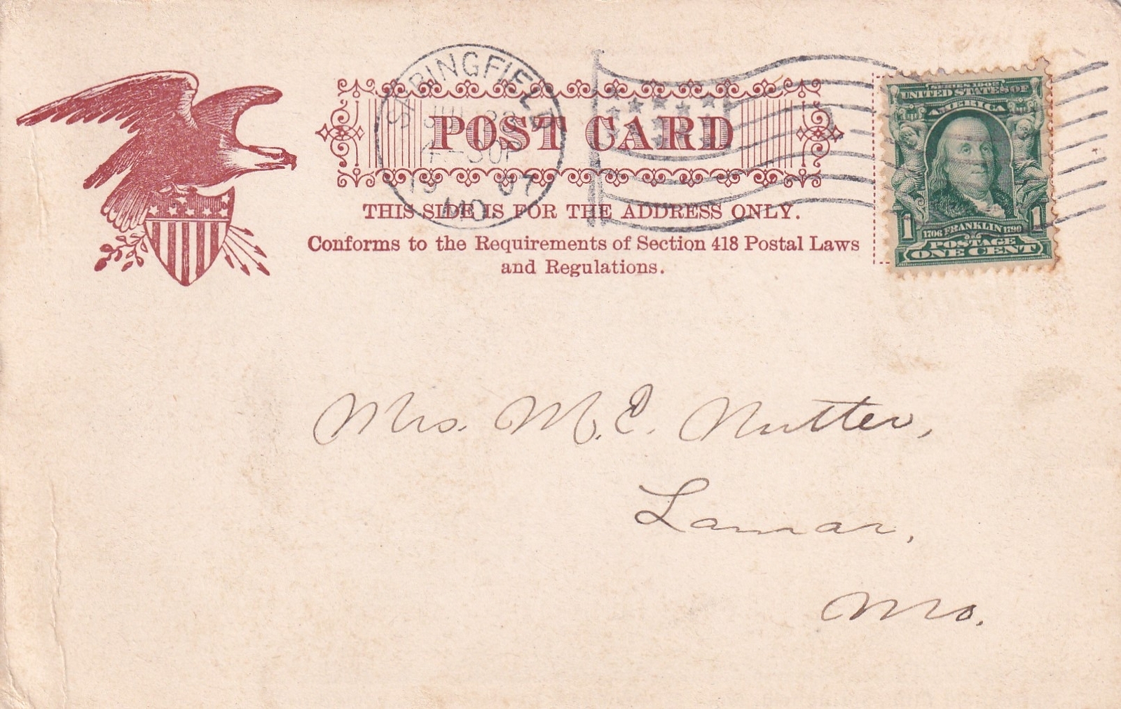 Springfield Club Missouri MO 1907 UDB Postcard E30