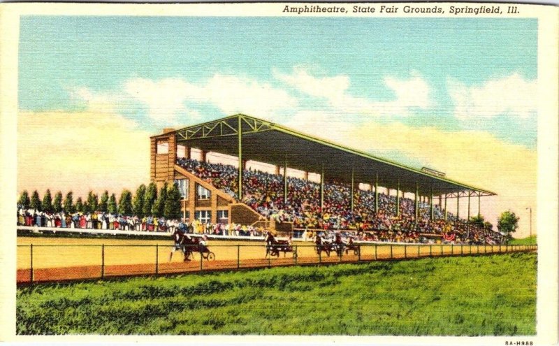 Springfield, IL Illinois HARNESS RACING~AMPHITHEATRE State Fair Grounds Postcard