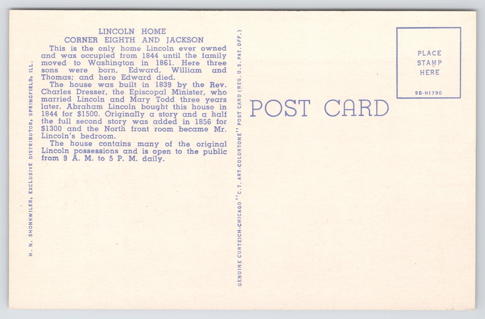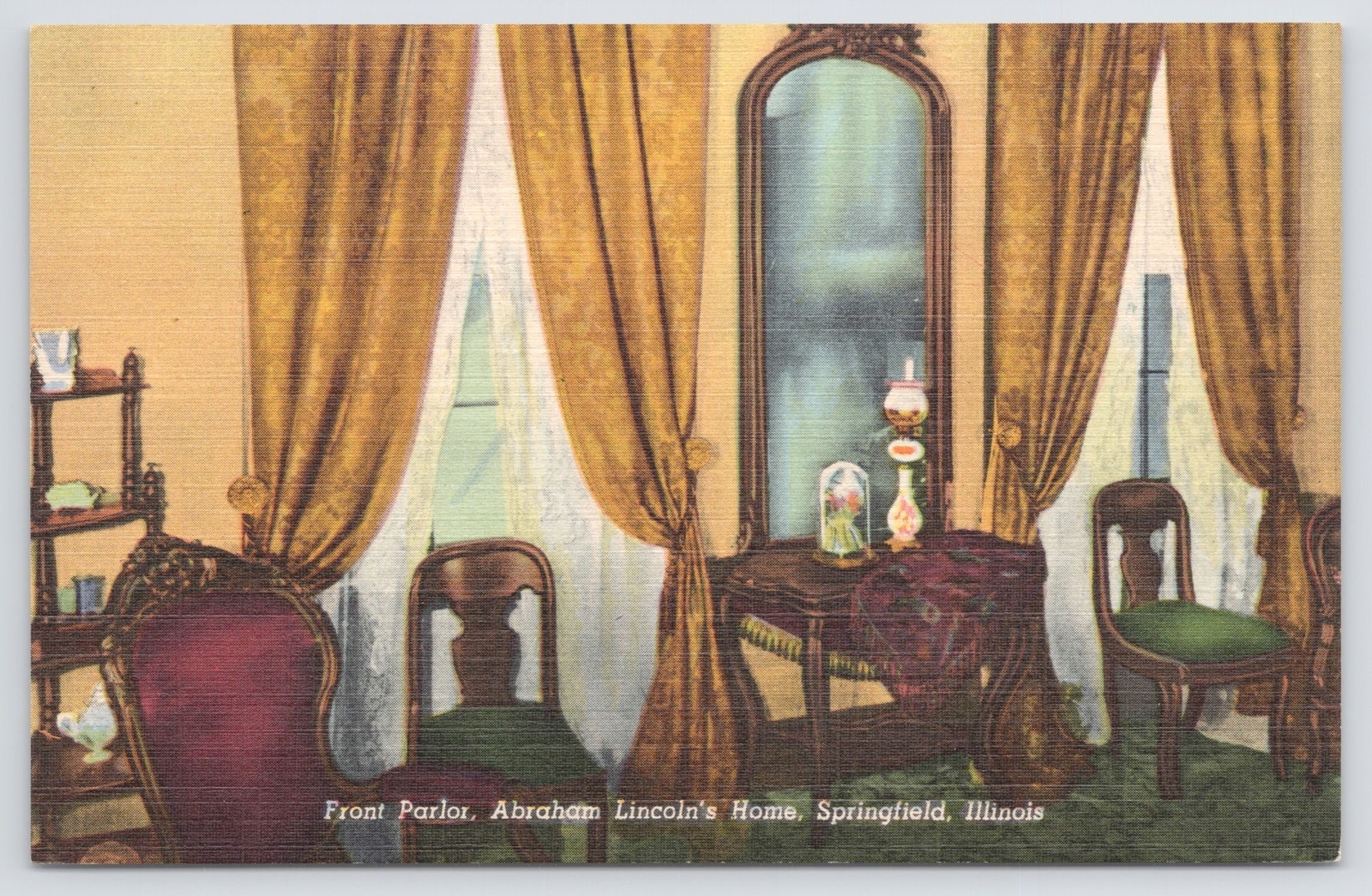 Springfield Illinois~Abraham Lincoln House Interior~Front Parlor~Linen Postcard