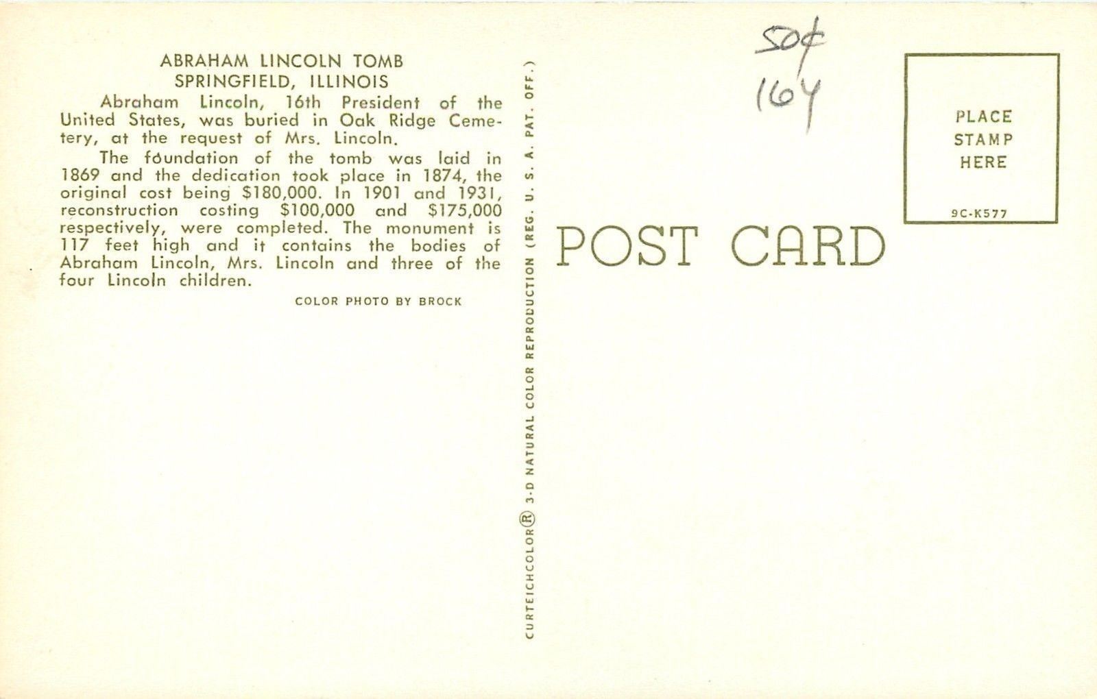 Springfield Illinois~Abraham Lincoln Tomb~1950s Postcard