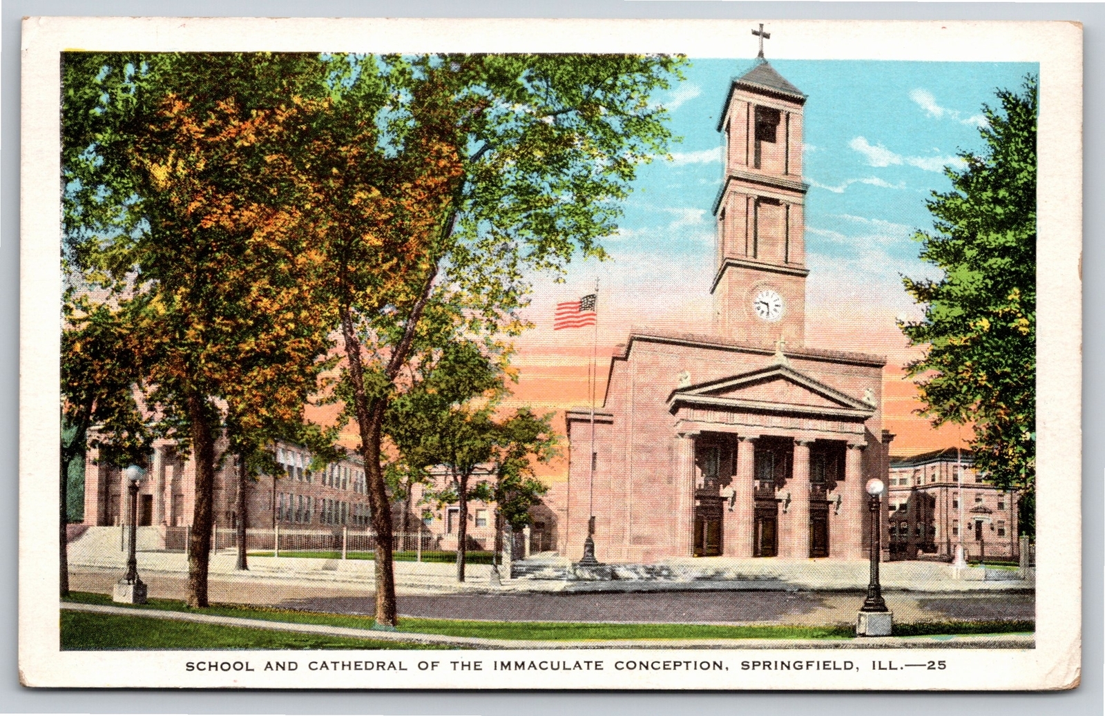 Springfield Illinois~School & Cathedral Immaculate Conception~Vintage Postcard