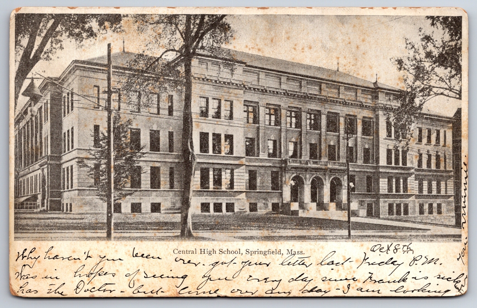 Springfield Massachusetts~Central High School~3 Arched Entrances~1908 UDB PC
