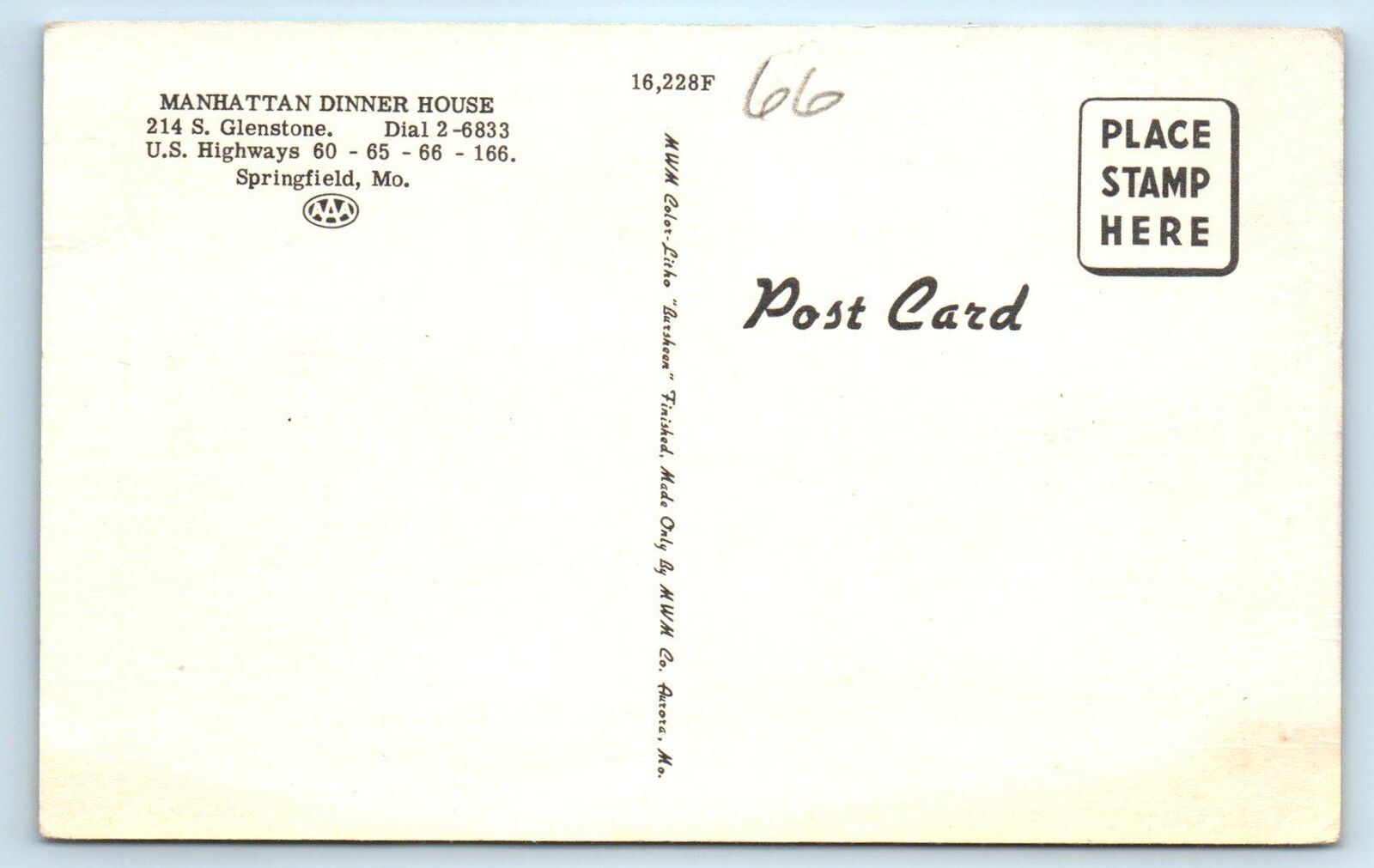SPRINGFIELD, Missouri MO ~ Route 66 MANHATTAN DINNER HOUSE Roadside Postcard