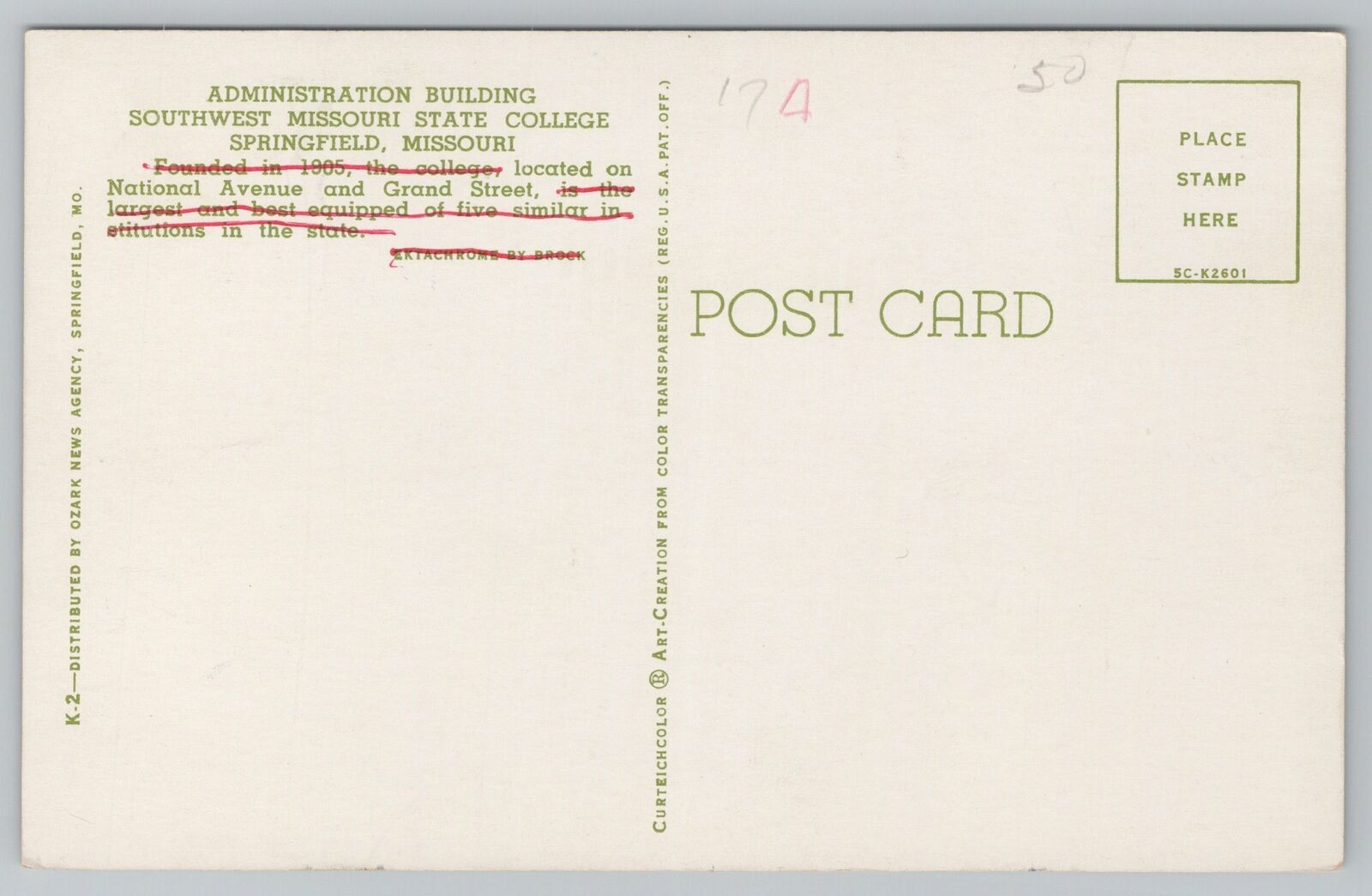 Springfield Missouri~Administration Building State College~Vintage Postcard
