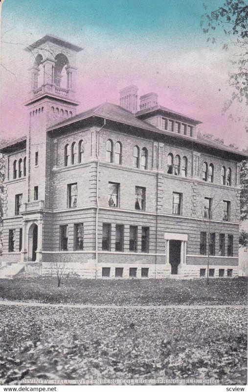 SPRINGFIELD, Ohio, 1900-1910's; Divinity Hall, Wittenberg College :: Postcard, 3.5" by 5", Litho