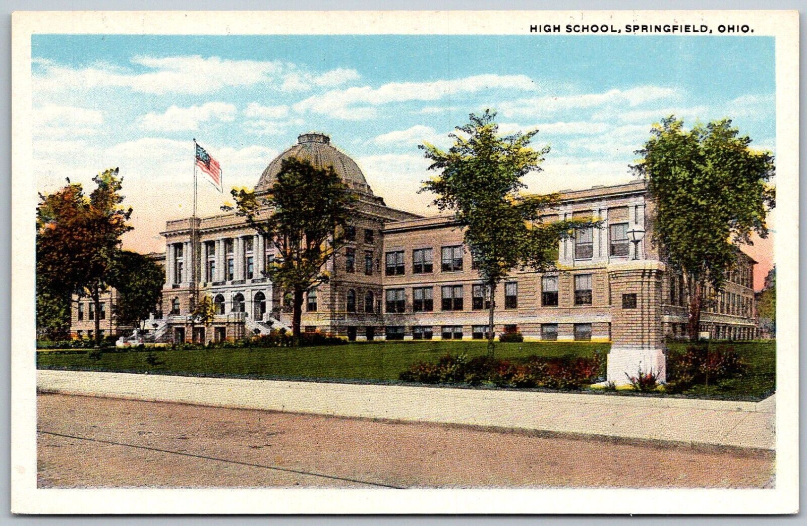 Springfield Ohio 1920s Postcard HIgh School Flag Trees