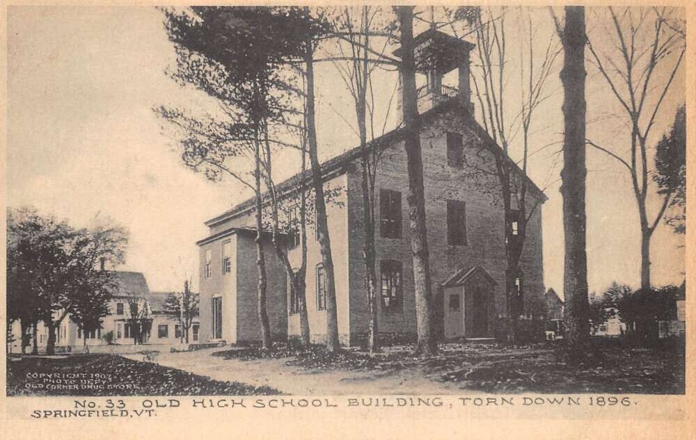 Springfield Vermont Old High School Vintage Postcard AA78854