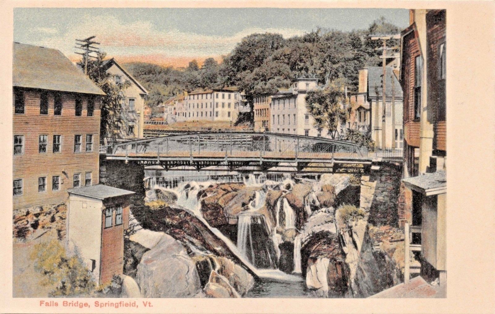 SPRINGFIELD VERMONT~FALLS BRIDGE-G W MORRIS PUBLISHED POSTCARD 1900s
