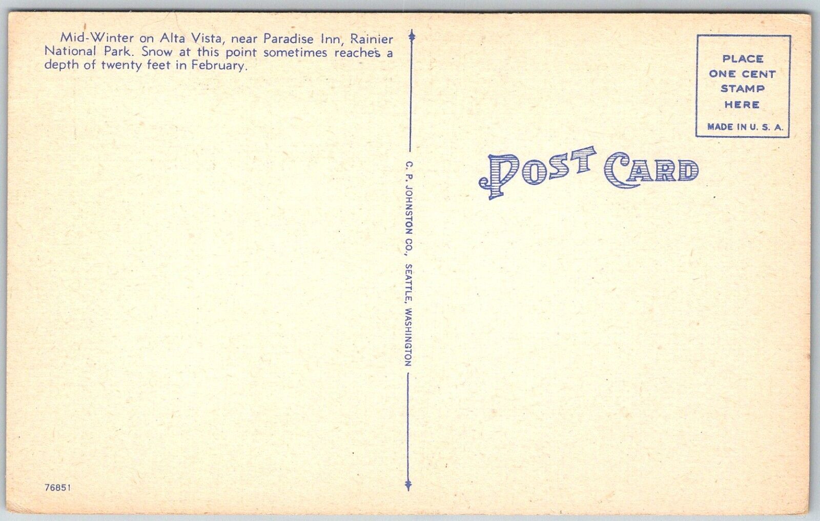 Springtime at Mt. Rainier Washington 1940s Linen Postcard Snow Evergreens