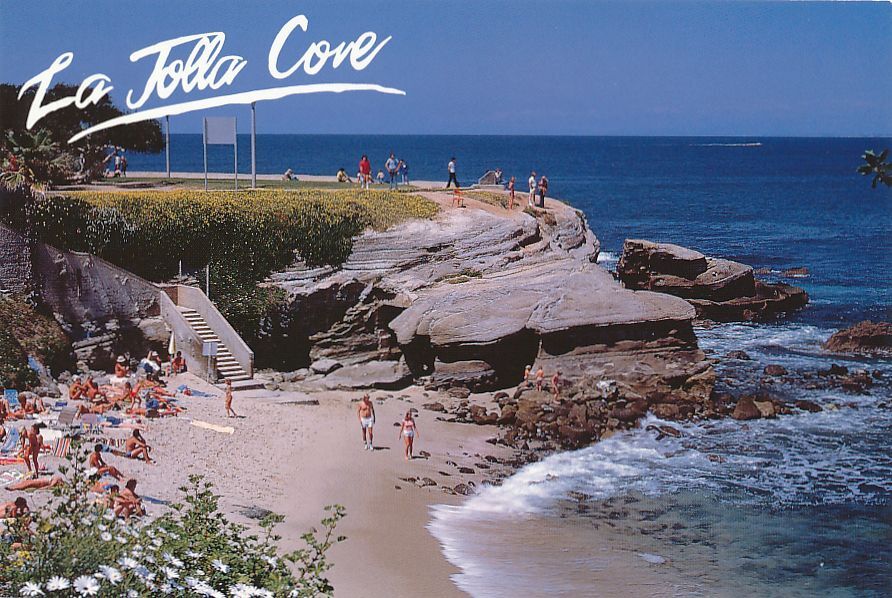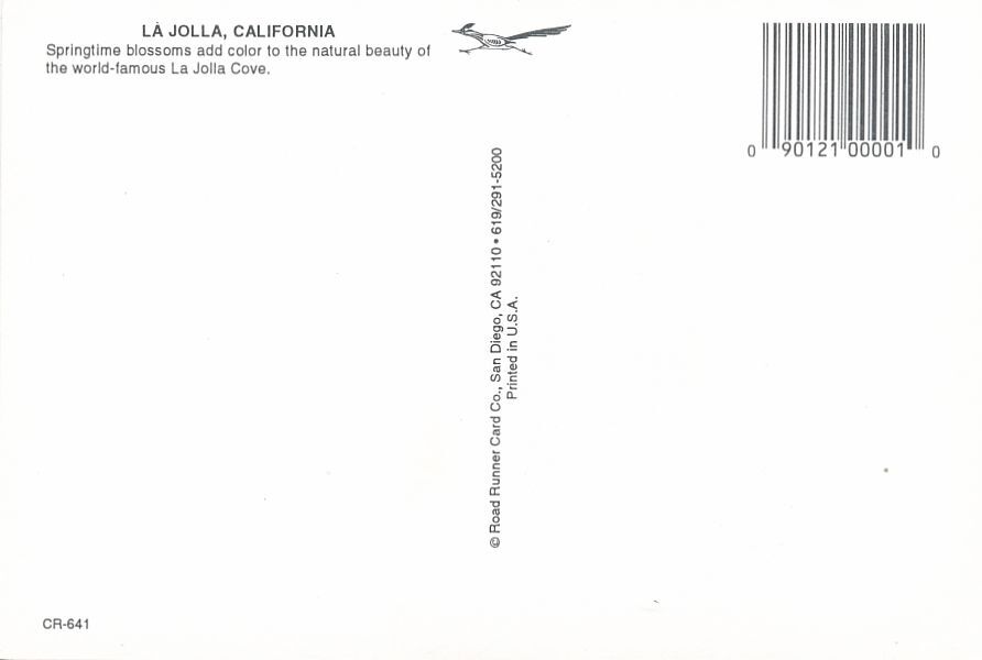Springtime Blossoms at La Jolla Cove. La Jolla, California. Continental sized chrome card. Excellent condition.
