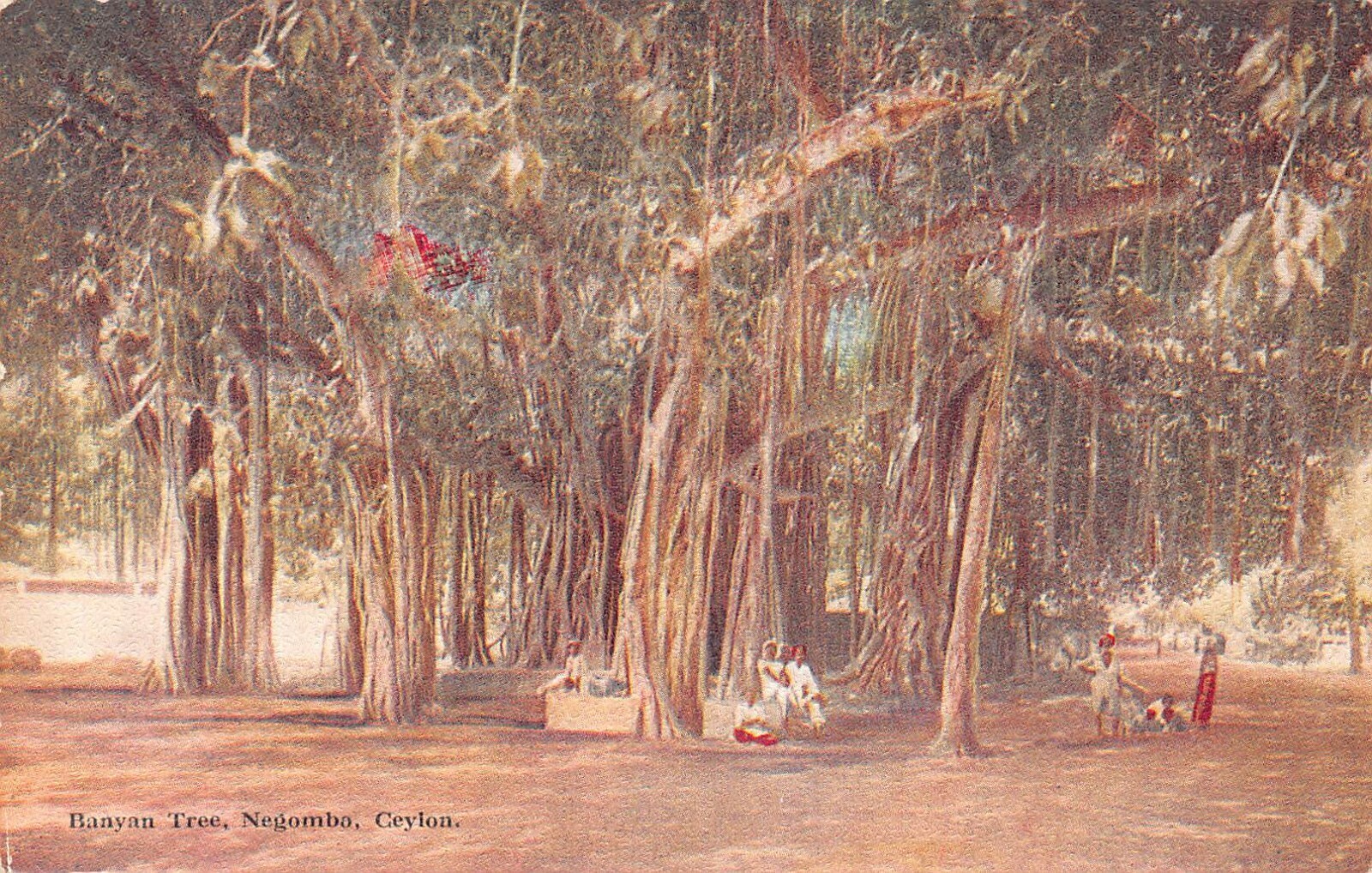 Sri Lanka Ceylon Banyan Tree Negombo vintage postcard