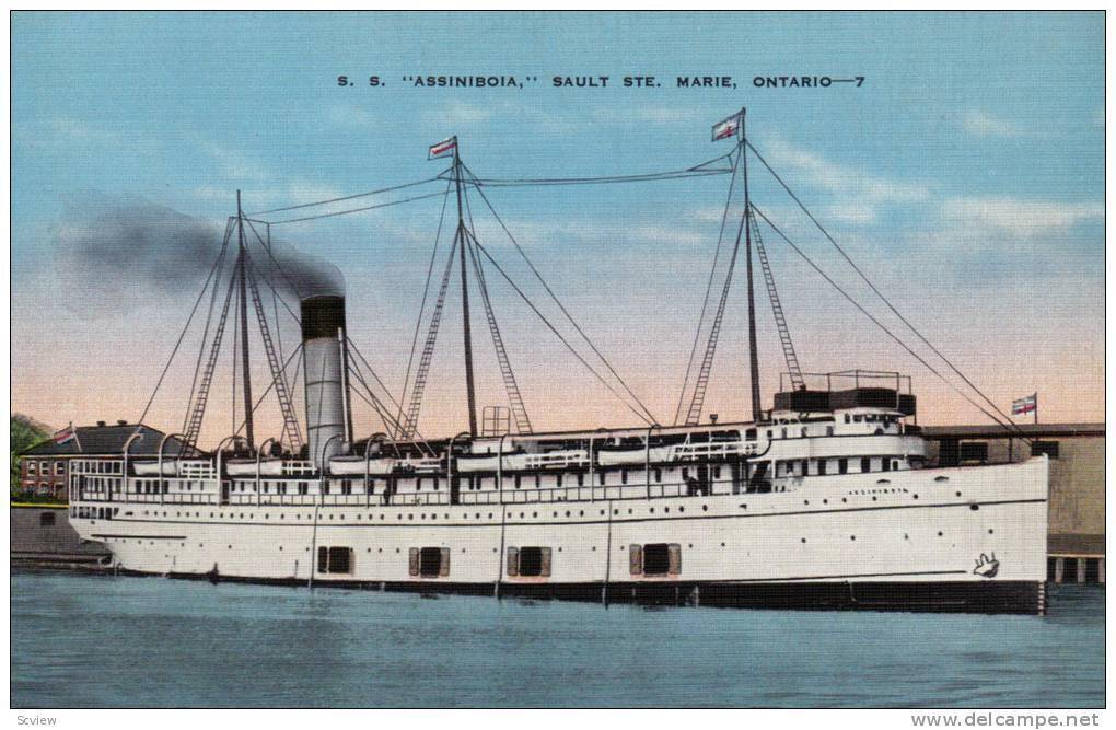 S.S. "Assiniboia," Sault Ste, Marie,Ontario,Canada,30-40s :: Postcard,standard size,3.5 by 5.5,Linen,EX
