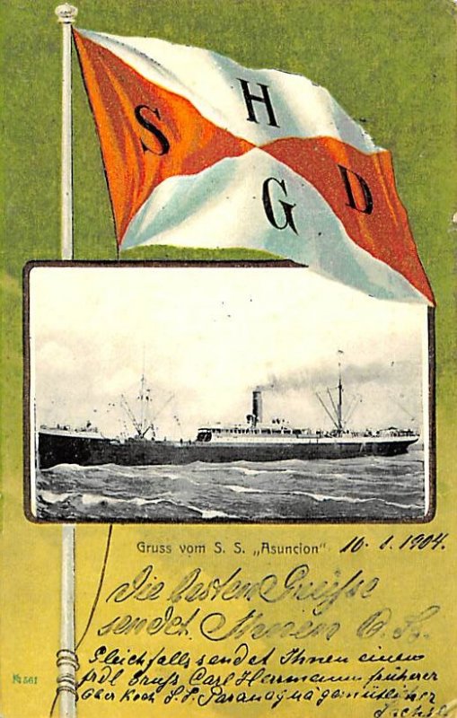 SS Asuncion reproduction Ship Postcard Unused, Grade: 3 - writing on front Size: Regular Size Postcard - approximately 3 1/2 inch x 5 1/2 inch (9 CM x 14 CM) Grading Scale: Grade 1 = Perfect corners Grade 2 = V ... Read More