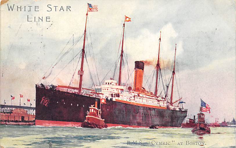 SS Cymric White Star Line Postcard Writing on back, Grade: 4, , Size: Regular Size Postcard - approximately 3 1/2 inch x 5 1/2 inch (9 CM x 14 CM) Grading Scale: Grade 1 = Perfect corners Grade 2 = Very Minimal ... Read More