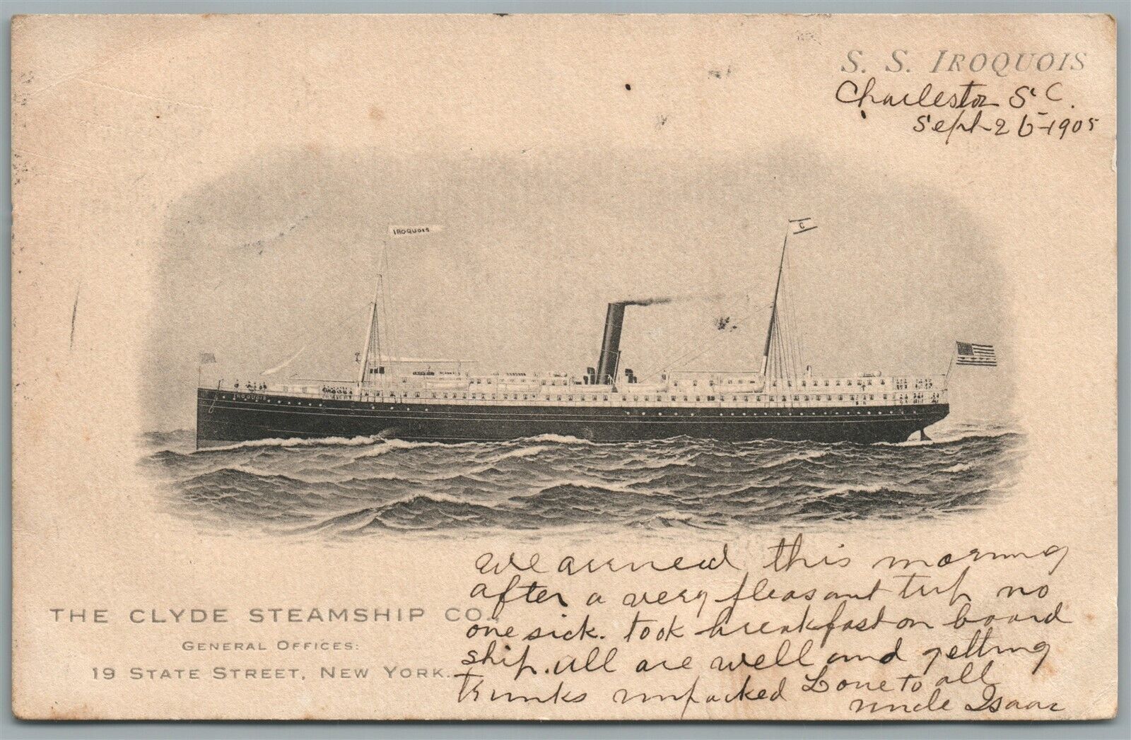SS IROQUOIS CLYDE STEAMSHIP CO. ANTIQUE POSTCARD