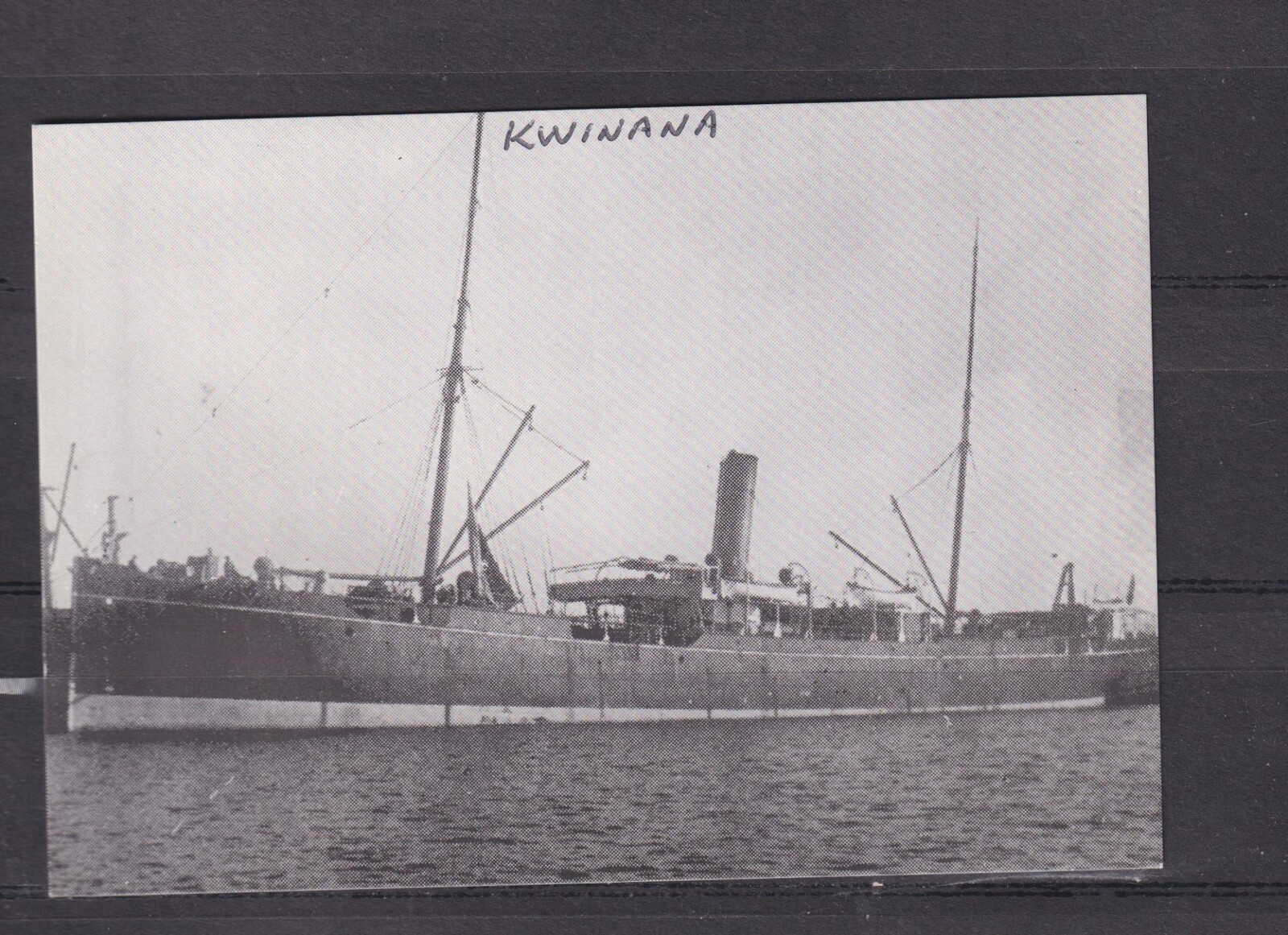 " S.S. KWINANA " ex " DARIUS, Built 1892,1987 REPRINT. " S.S. KWINANA " ex " DARIUS, Built 1892,1987 REPRINT. Description " S.S. KWINANA " ex " DARIUS, Built 1892,1987 REPRINT. Postage and Packing North & South America, Europe, Africa, Middle East,US$ 3.00 New Zealand & South East Asia US$ 2.50 Australia US$ 2.00. Registered mail is $13.00 worldwide, Australia US$ 4.00 No extra for combined purchases. V 60 Click images to enlarge Get images thatmake Supersized seem small.Showcase your items with Auctiva'sListing Templates!THE simple solution for Hip sellers.Track Page Views WithAuctiva's Counter