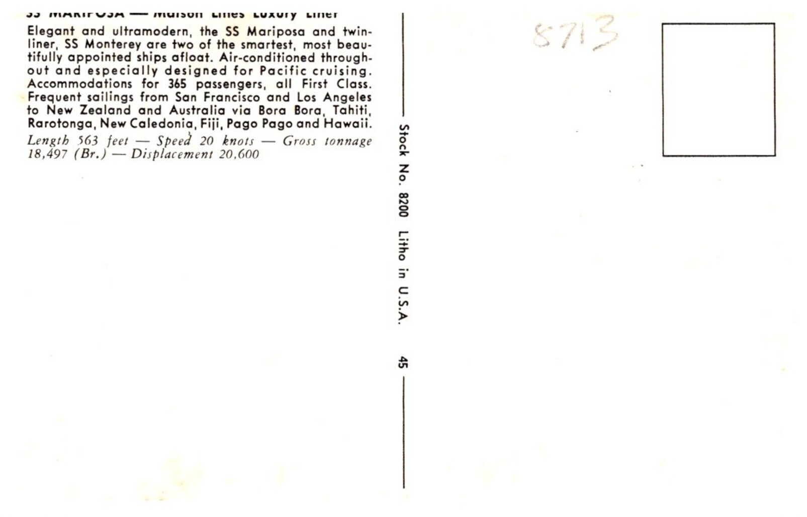 S.S. Mariposa Matson Lines