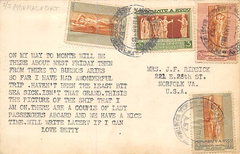 SS Mormacfort Real Photo Moore McCormack Line Ship Postcard ,
