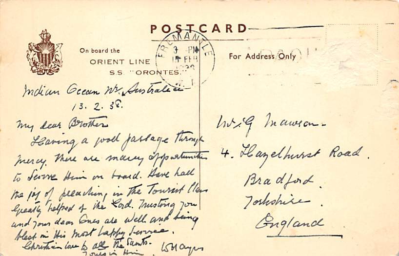 S.S. Orontes S.S. Orontes, Orient Line Postcard View image, Grade: 3 - wear on back side, , Size: Regular Size Postcard - approximately 3 1/2 inch x 5 1/2 inch (9 CM x 14 CM) Grading Scale: Grade 1 = Perfect co ... Read More