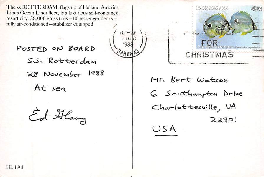 SS Rotterdam Holland-American Line Ship Postcard ,