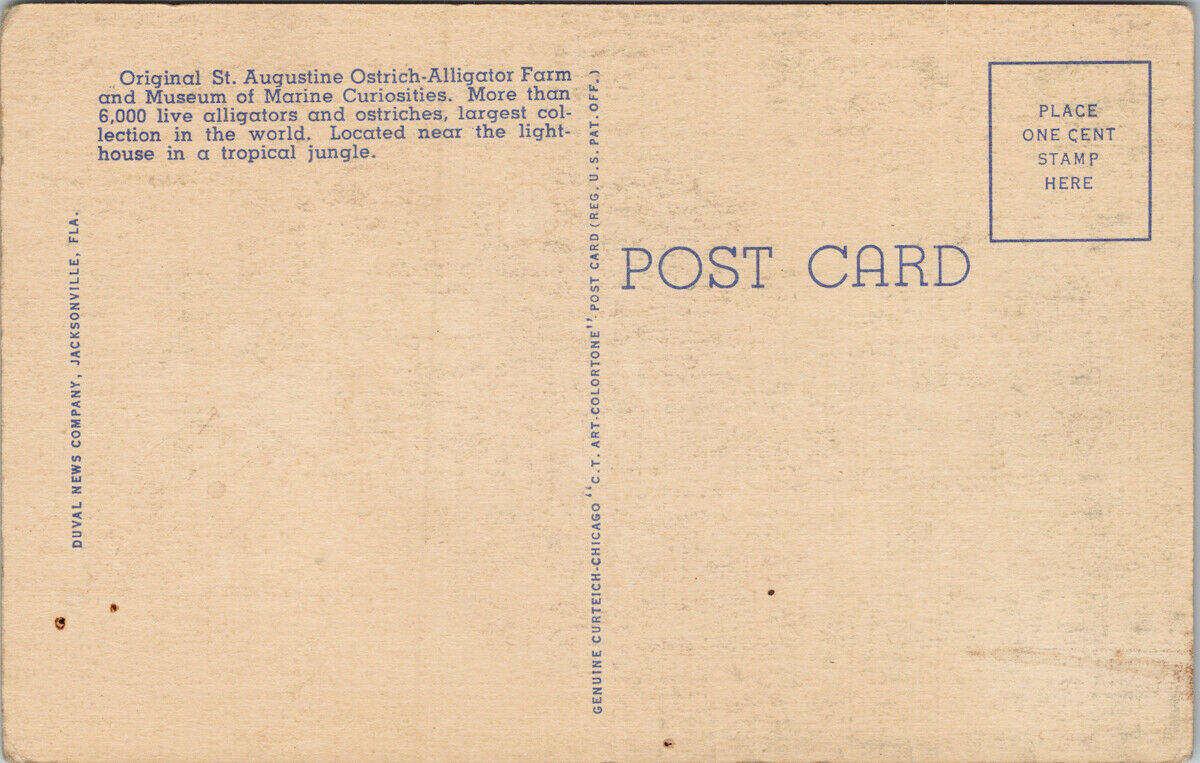 St Augustine FL Alligator & Ostrich Farm Linen Postcard G78Let me know if you have any questions and thanks for viewing. D