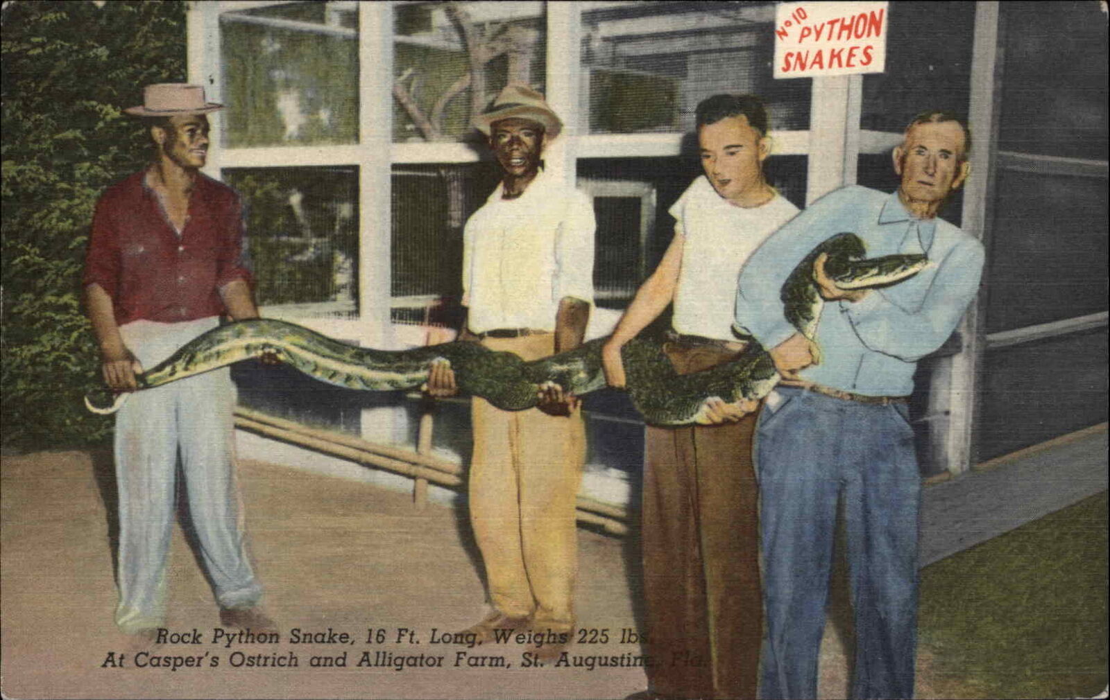 St. Augustine FL Black Men Casper Ostrich Farm Huge Rock Python Snake LINEN