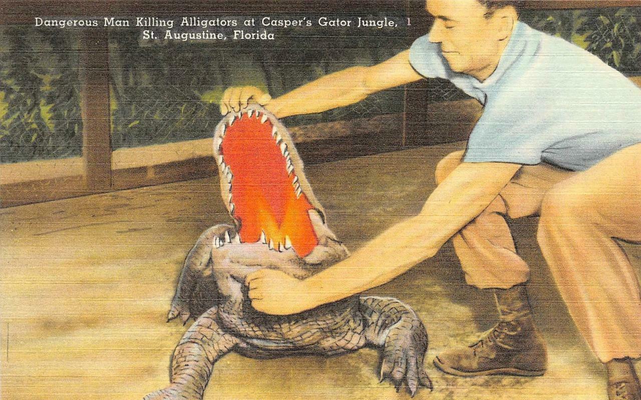 St augustine, fl florida casper's gator jungle man & alligator c1940's postcard