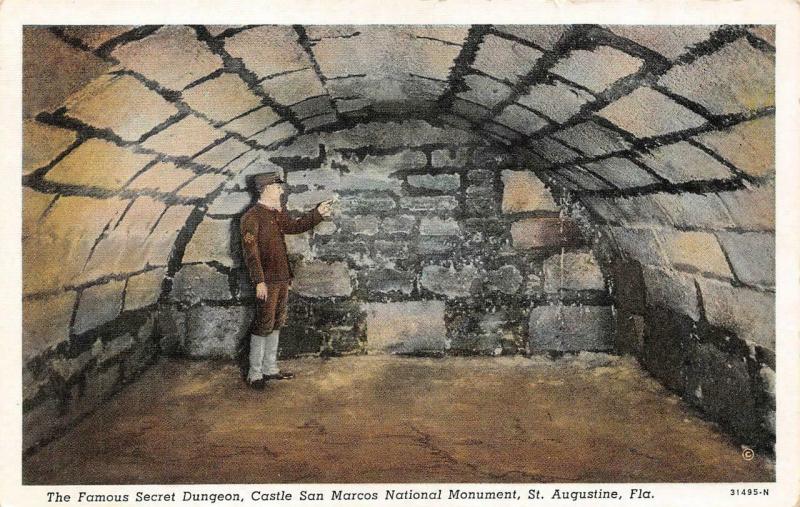 ST AUGUSTINE, FL Florida MAN~SECRET DUNGEON~Castle San Marcos c1940's Postcard