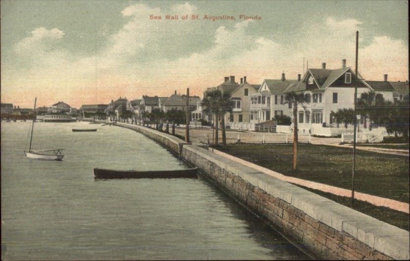 St. Augustine FL Sea Wall c1910 Postcard #4