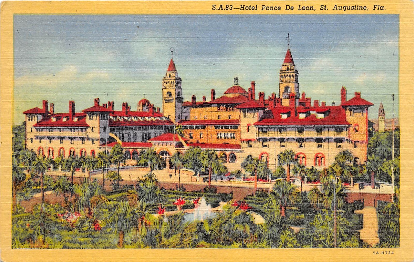 St. Augustine Florida 1940s Postcard Hotel Ponce De Leon