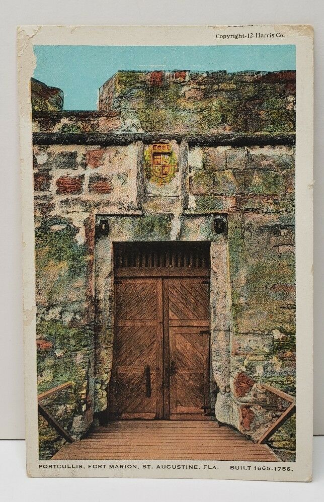 St Augustine Florida PORTCULLIS Fort Marion 1924 Postcard C10