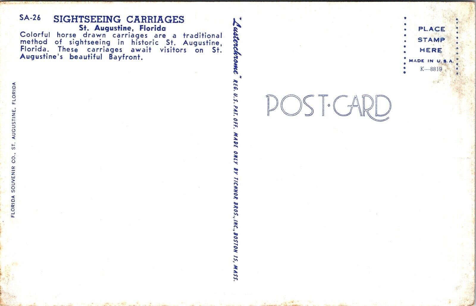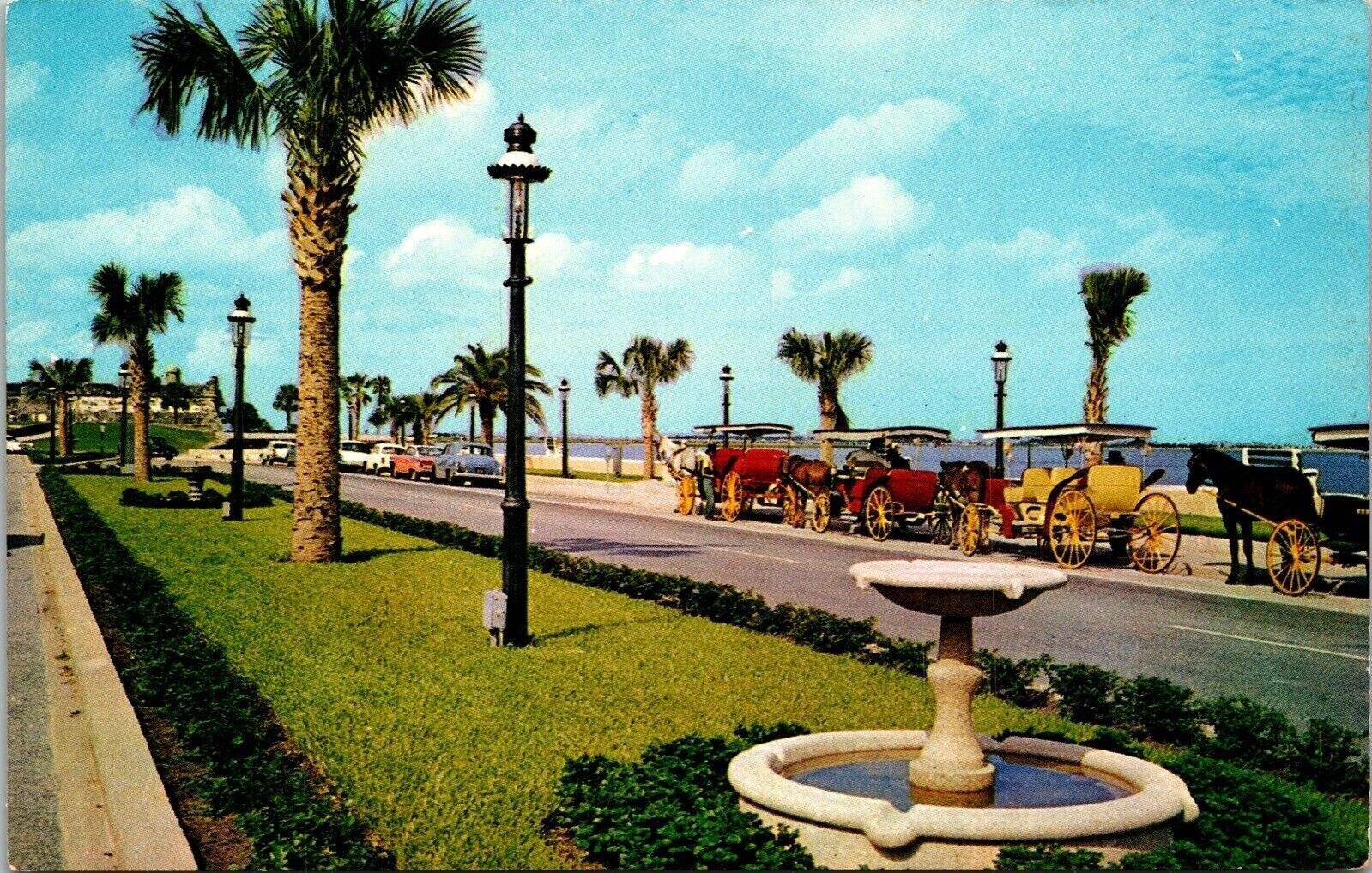 St augustine florida sightseeing carriages palm trees fountain chrome postcard