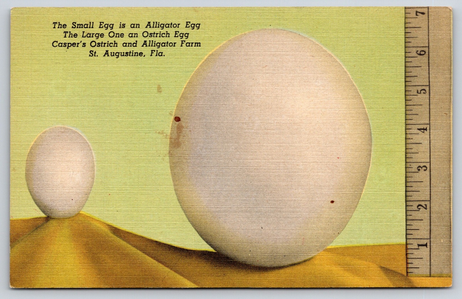 St Augustine Florida~Caspers Farm~Alligator & Ostrich Egg~Linen 1940s Postcard
