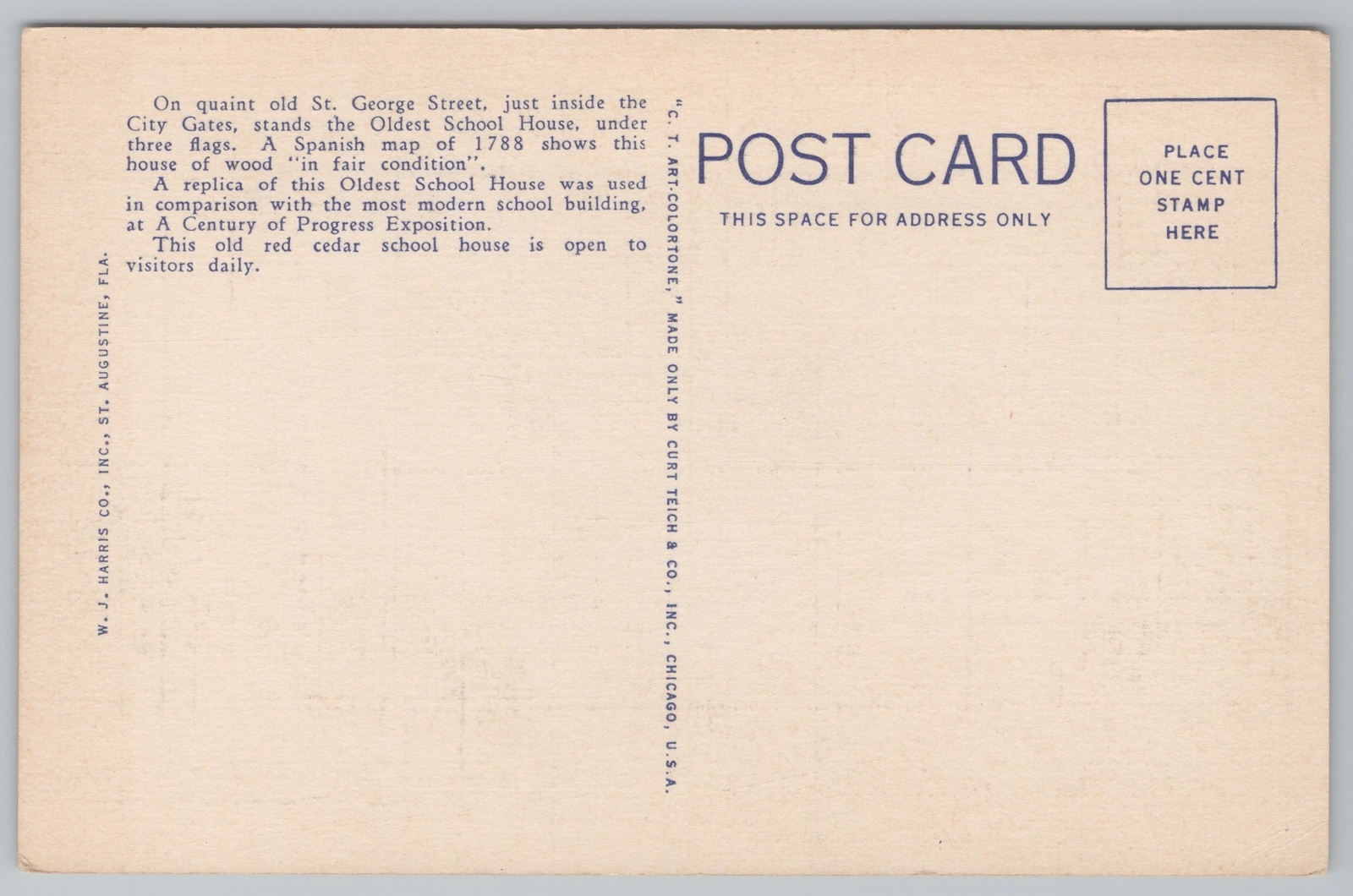 St Augustine Florida~Oldest School House~Bell~Linen Vintage Postcard