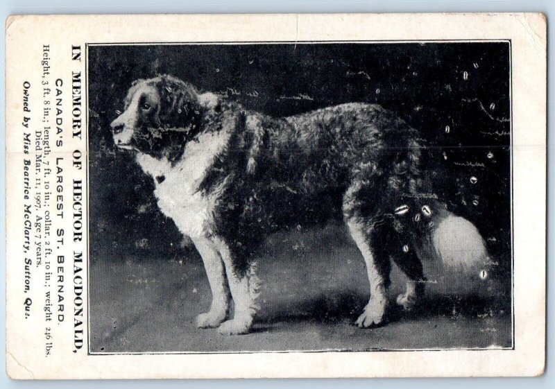 St. Bernard Dog Postcard In Memory Of Hector MacDonald Sutton Quebec c1905