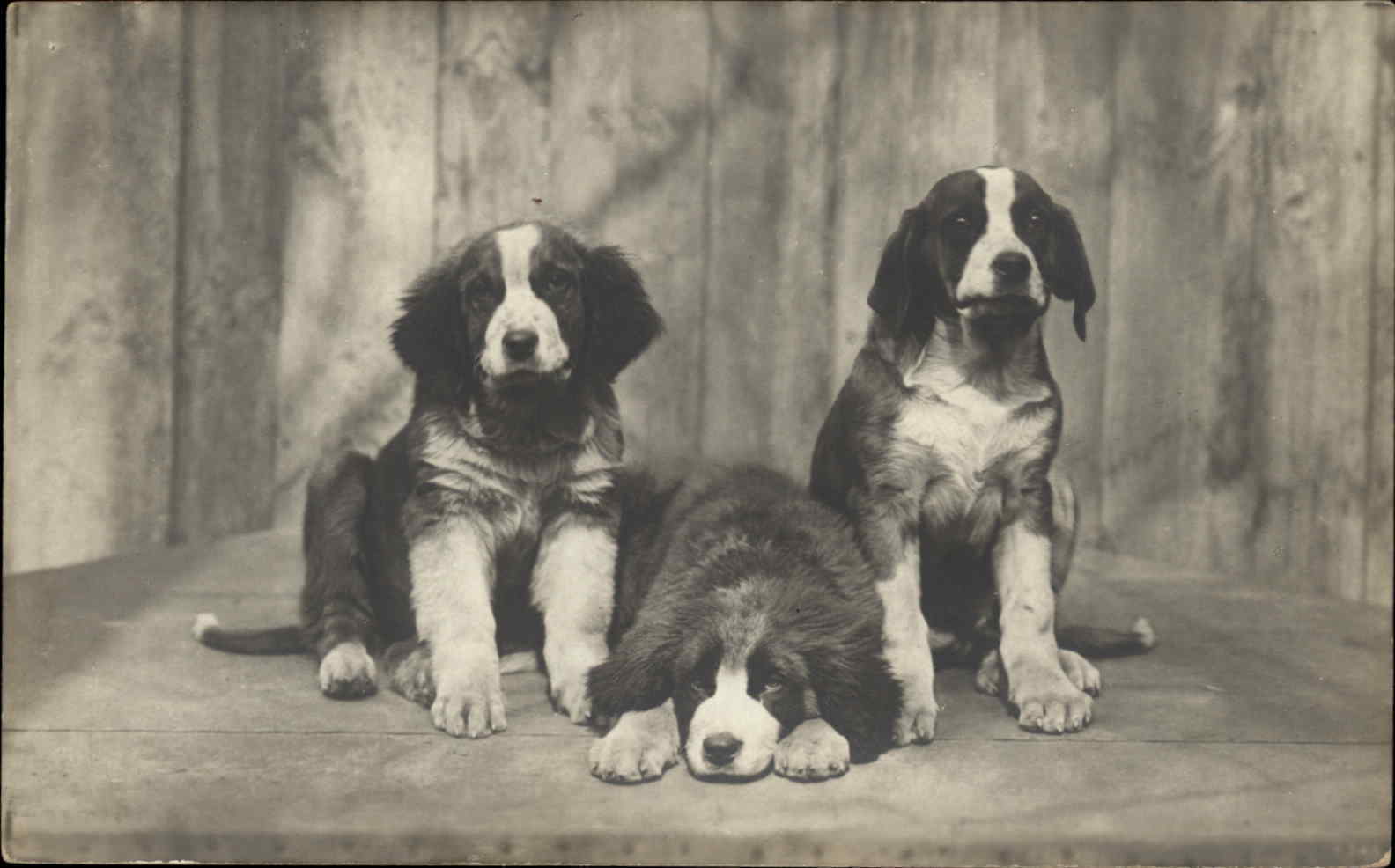St Bernard ?? Puppy Dogs c1910 Real Photo Postcard