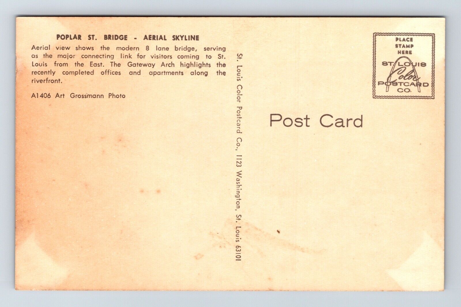 St bridge aerial skyline view st louis e gateway arch riverfront mo postcard unp You will receive the exact postcard in the picture. We use a high quality scanner to capture pictures of the front and back for every ... Read More