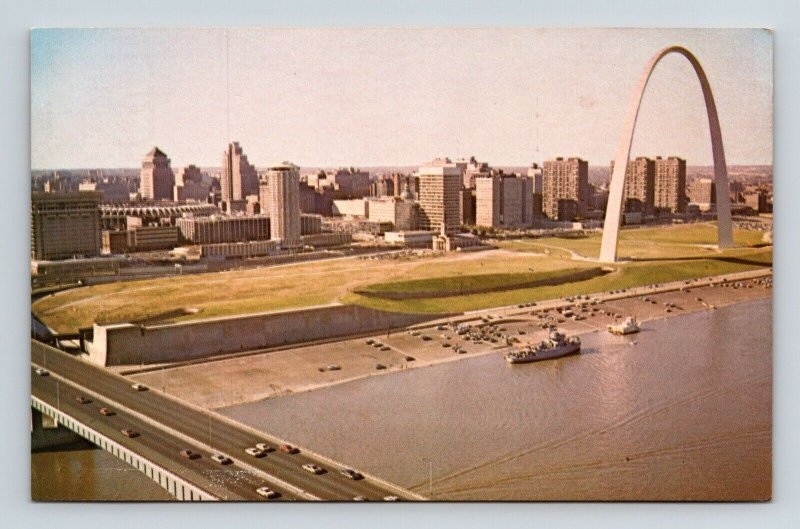 St Bridge Aerial Skyline View St Louis E Gateway Arch Riverfront MO Postcard UNP