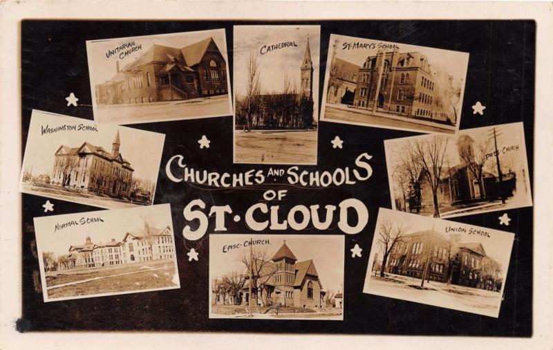 ST CLOUD MINNESOTA CHURCHES & SCHOOLS~REAL PHOTO POSTCARD 1910