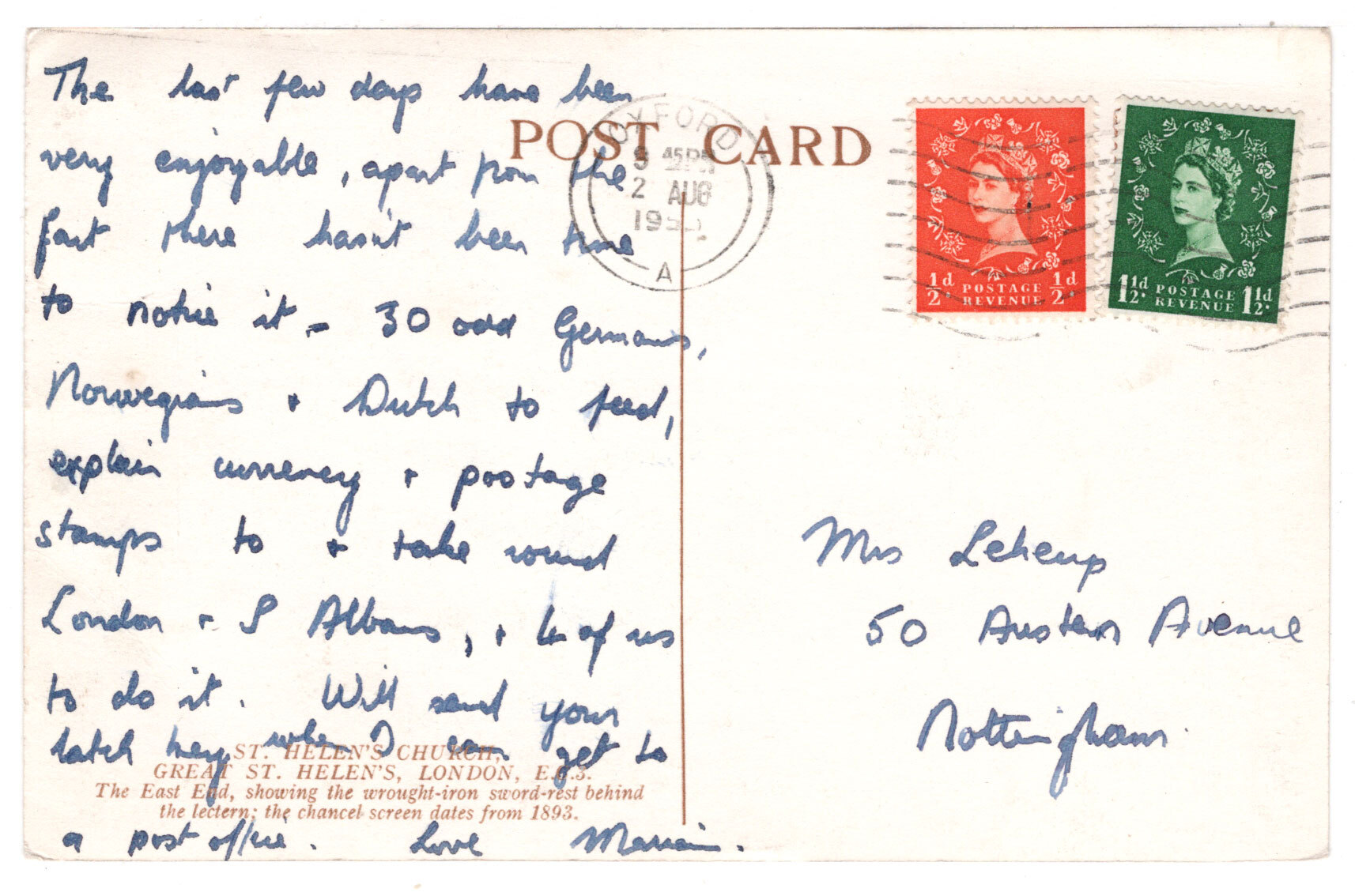 Postcards are shown from Actual Scan - Post Marked August 2, 1953) in Very Good Condition.