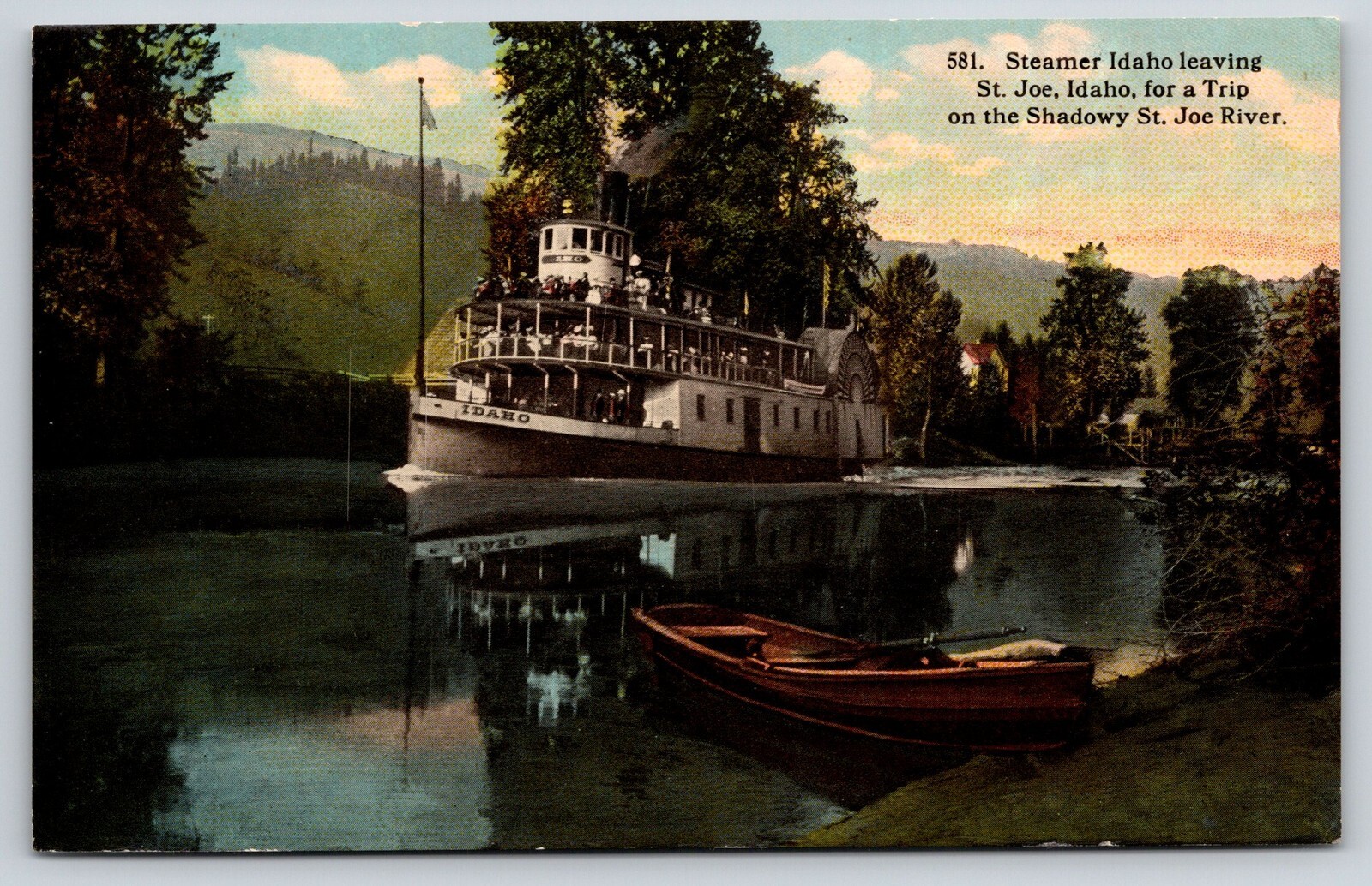 St Joe ID~Excurison Steamer Idaho Crowded Decks~St Joe River~Rowboat~c1910 PC