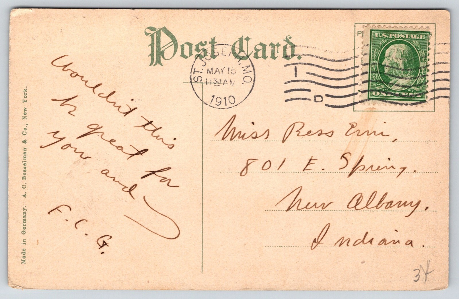 Condition: Vintage Postcard listed as "used" because of age. It may or may not be postally used. We provide ... Read more about the seller notes Vintage Postcard listed as "used" because of age. It may or may not be postally used. We provide scans that show all edges and corners. See photos, front and back, for condition. Read Less about the seller notes