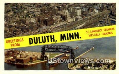 St. Lawrence Seaways in Duluth, Minnesota Postcard - Unused Grade: 1 Size: R - Regular size: Approx 3 1/2 X 5 1/2 inch (9 cm X 14 cm) Grading Scale: Grade 1 = Perfect corners Grade 2 = Very Minimal corner wear ... Read More